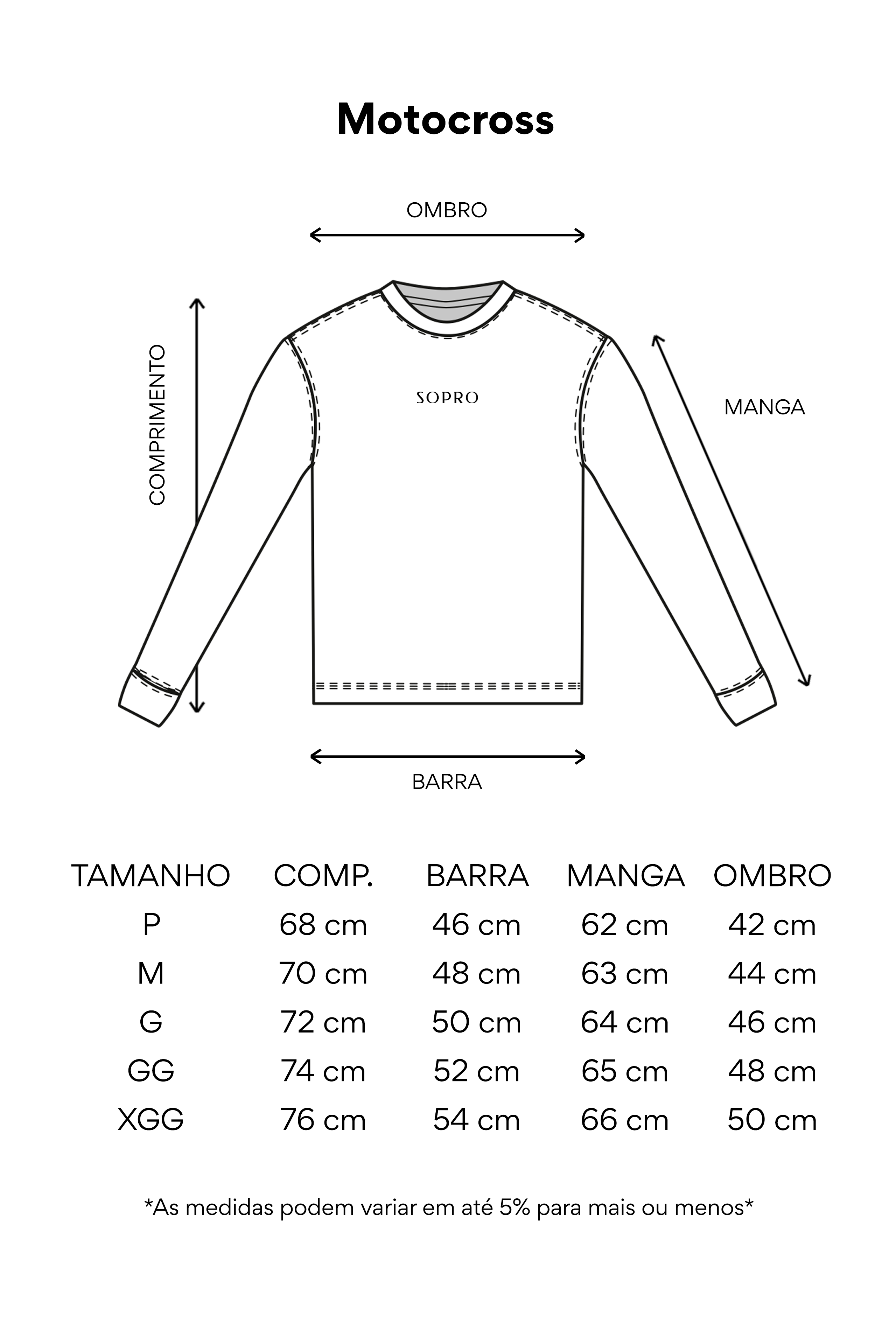 Inspirada nos uniformes das corridas de enduro na modalidade do motociclismo, essa peça é confeccionada com tecido Dry-Fit duplo, garantindo que não será uma peça transparente. Sua tecnologia garante respirabilidade e conforto no dia a dia ou atividades esportivas.